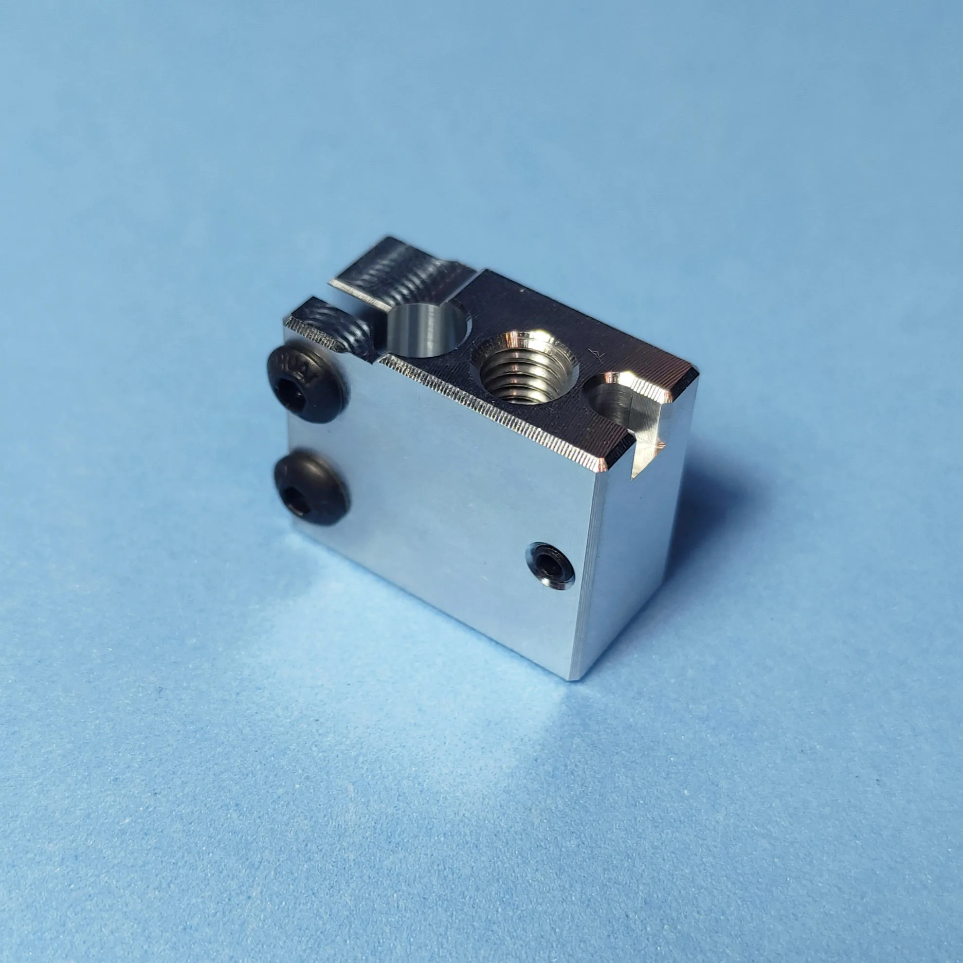 Aluminum Volcano heatblock. Even thought it was inexpensive, it looks well made and machined. It's made to accept thermistor cartridges. Can recommend the store!